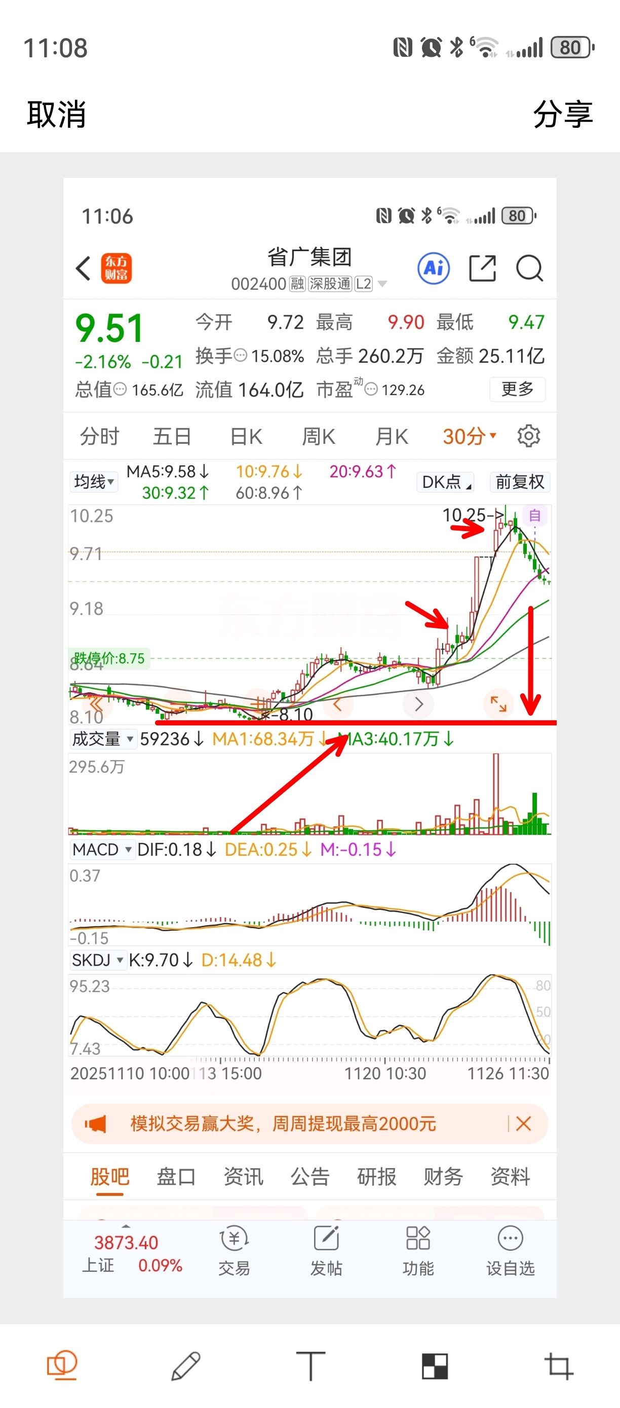 $省广集团(SZ002400)$ 量化时代,节奏真快,一点震荡空间也没有!看这样子,人家成本至少到8块1以下了!