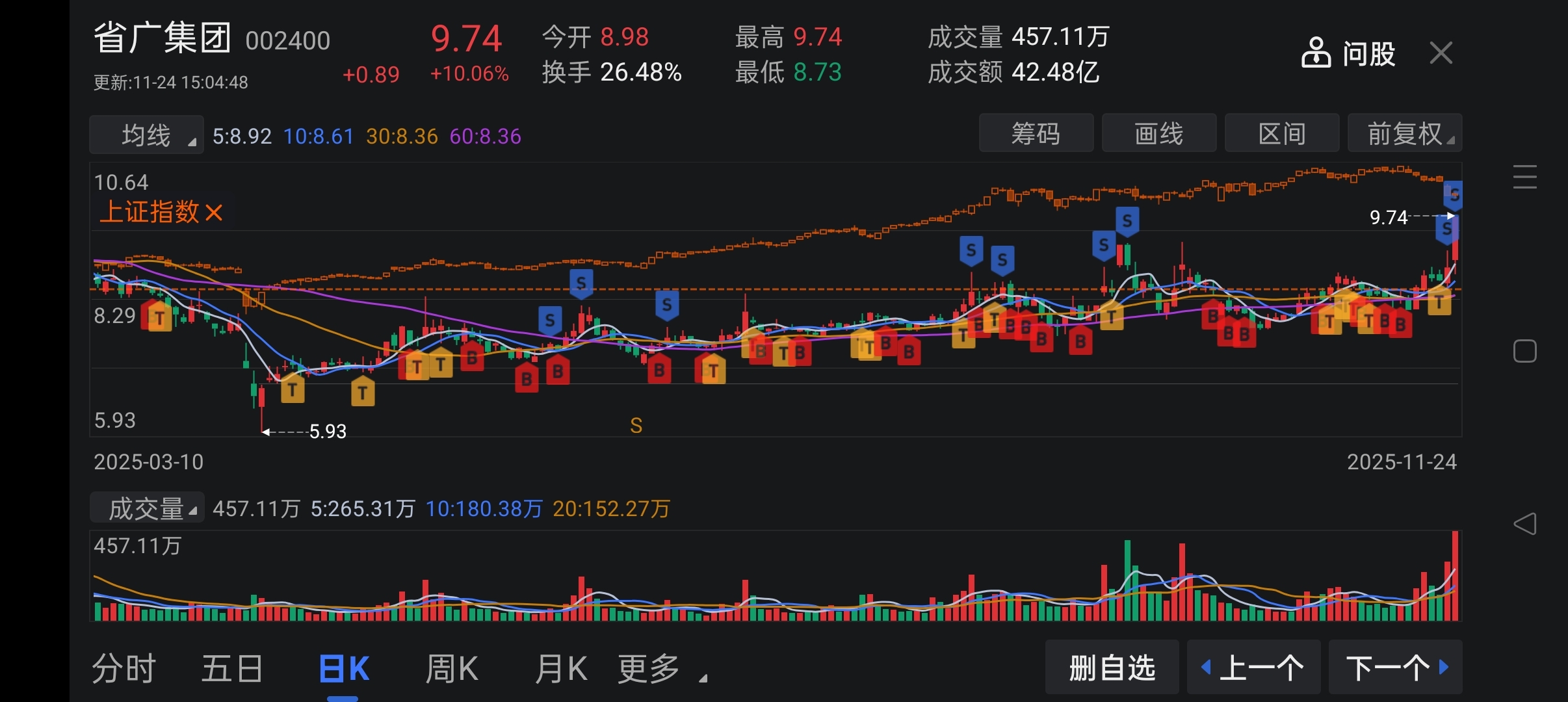 $省广集团(SZ002400)$ 第一天流出8个多亿你们就应该跑了 ,省广没有连板的今年,我涨停就走了,少赚点等回调,