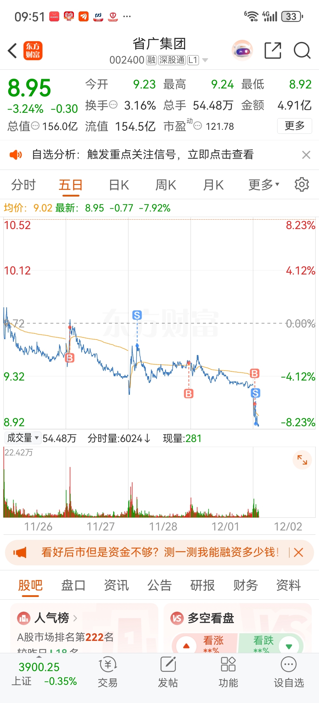 $省广集团(SZ002400)$ 拿了一周跌了一周,妈的!