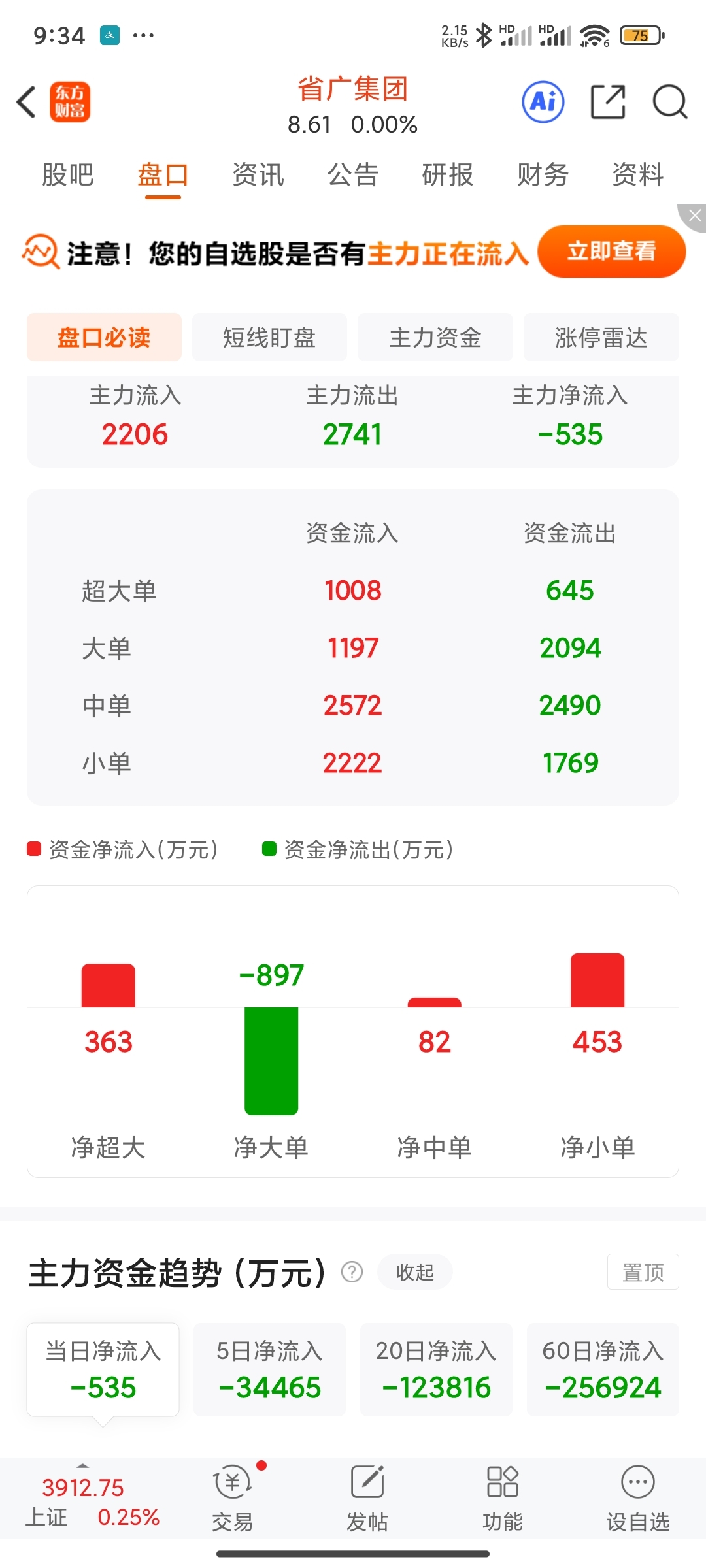 $省广集团(SZ002400)$ 不要抱有幻想,资金每天都在流出,怎么可能涨,挺劝,赶紧走,让量化主力自己玩