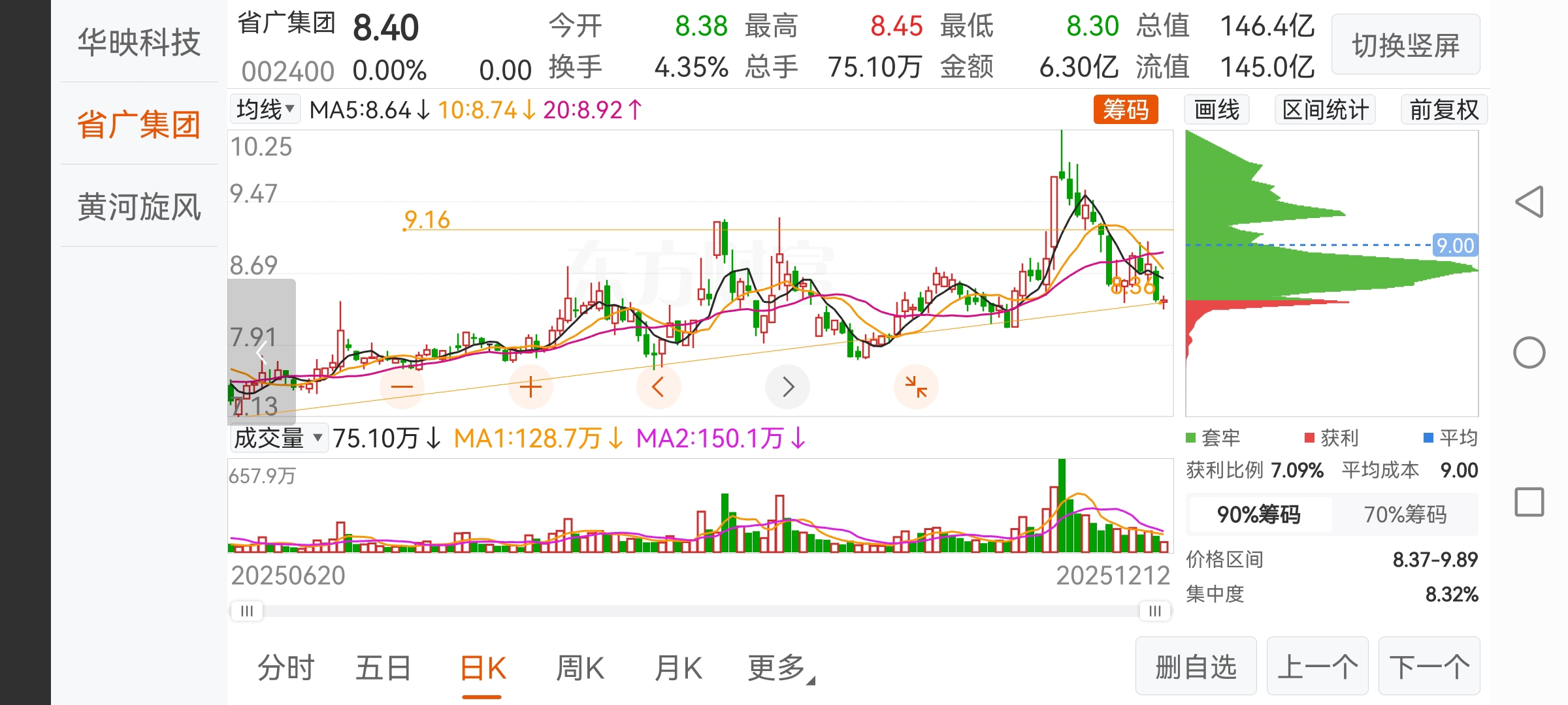 $省广集团(SZ002400)$ 礼拜五进的,这个位置,有得看不,这个走势想搏一波反弹