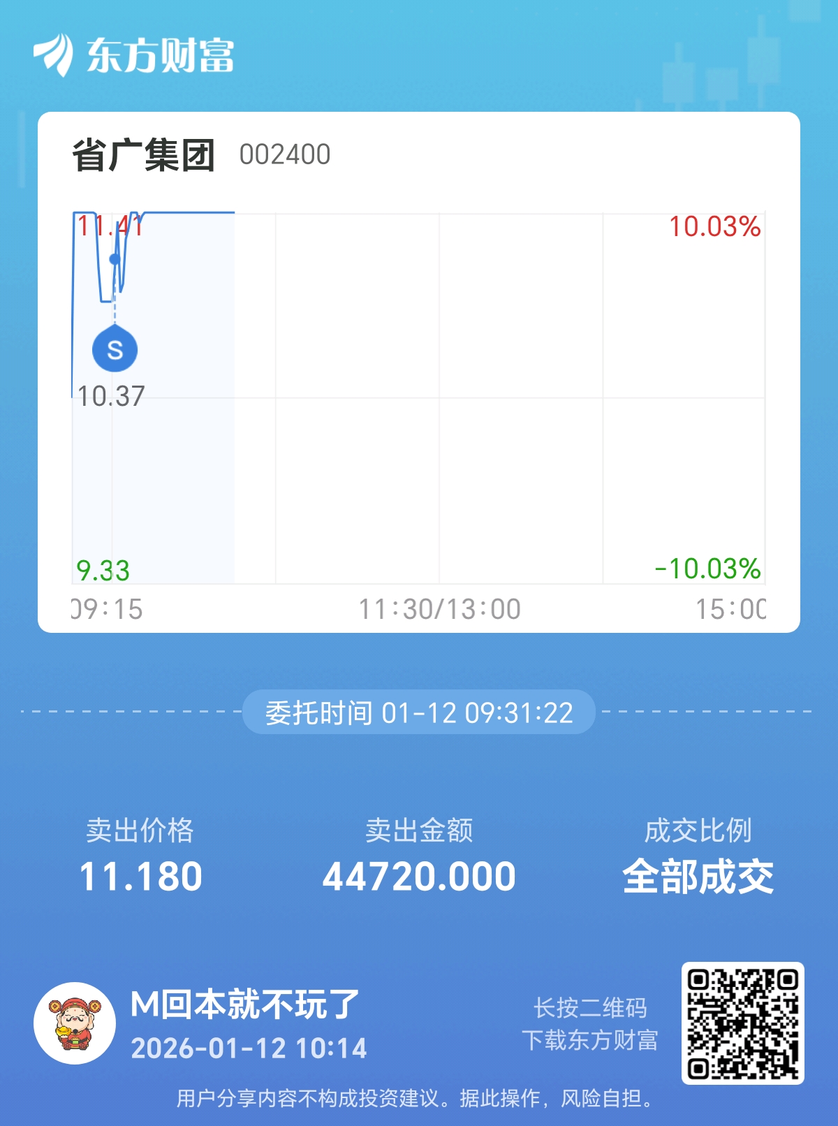 温馨提示: 1.根据《证券法》规定,禁止编造、传播虚假信息或者误导性信息,扰乱证券市场;2.用户在本社区发表的所有资料、言论等仅代表个人观点,与本网站立场无关,不对您构成任何投资建议。用户应基于自己的独立判断,自行决定证券投资并承担相应风险。《东方财富社区管理规定》