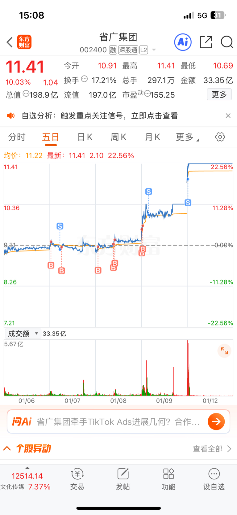 $省广集团(SZ002400)$ 周五已经t飞了,今天又飞