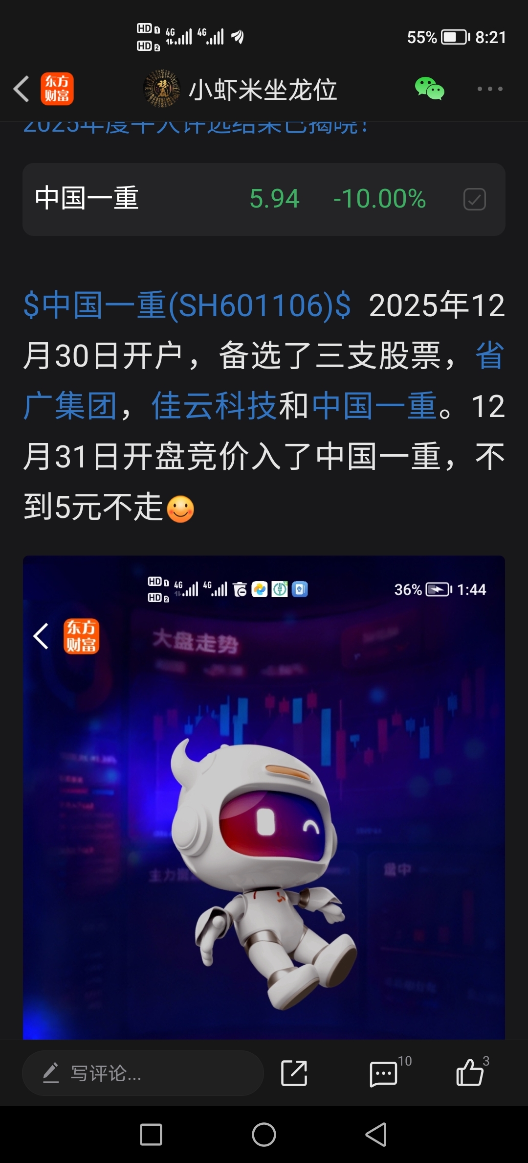 温馨提示: 1.根据《证券法》规定,禁止编造、传播虚假信息或者误导性信息,扰乱证券市场;2.用户在本社区发表的所有资料、言论等仅代表个人观点,与本网站立场无关,不对您构成任何投资建议。用户应基于自己的独立判断,自行决定证券投资并承担相应风险。《东方财富社区管理规定》