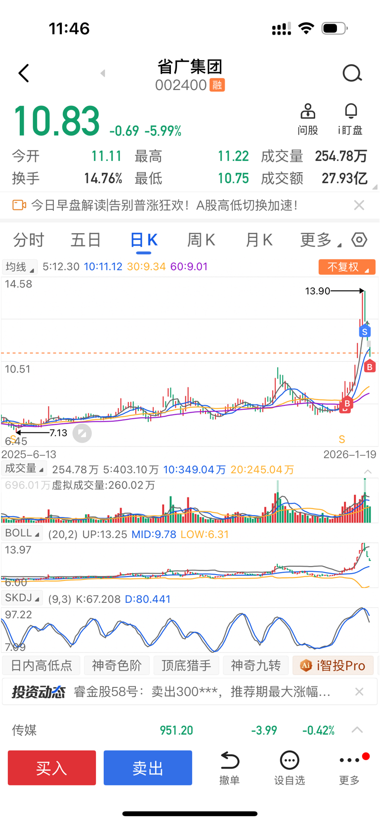 $省广集团(SZ002400)$ 大家都爱玩的票我又来了。业绩支撑的AI应用。短线可以玩、长线也可以玩。但是不能贪。从底部到逃顶,到今天首进1层仓。继续高额猛进。商业航天在修复、为来的主。AI应用也要修复、只是两个大哥关着小弟不敢放肆。我不敢玩大哥、但是小弟我还是敢欺负的。干就完事了。在自己逻辑内的就干。