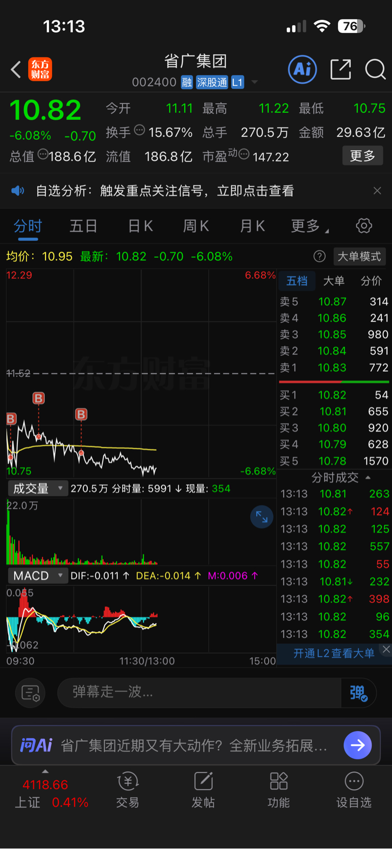 $省广集团(SZ002400)$ 等我开资 我还买