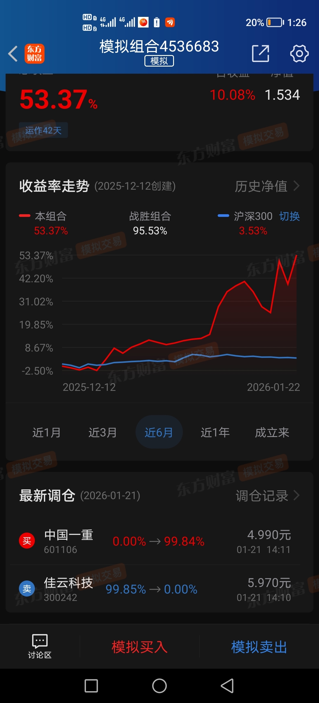 我的模拟盘都是先于实盘,买入后我会跟据走势,再决定是否实盘买入,可这次我的模拟盘