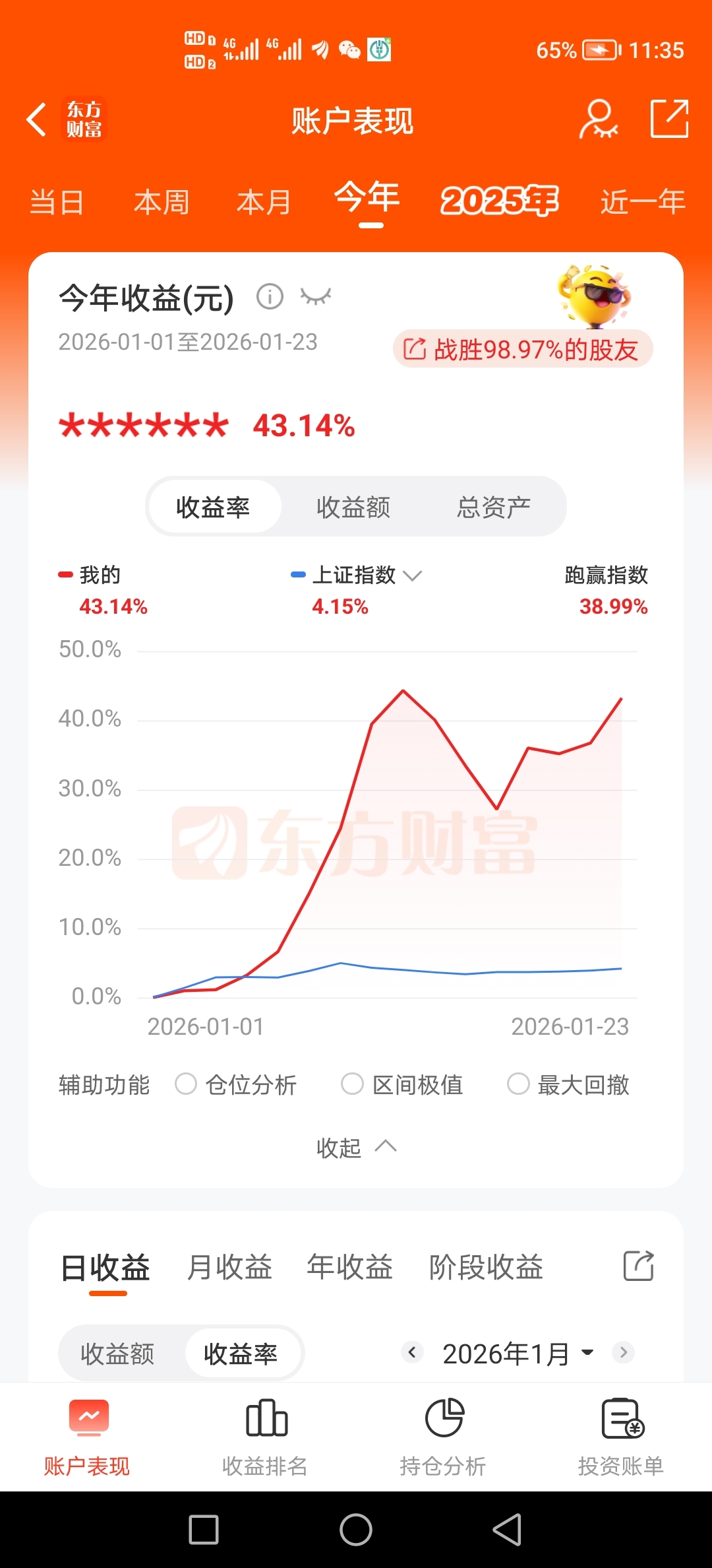 今天应该是子弹打满的一天,收益额创了新高,收益率也仅差一个点了,一起加油吧。紧握