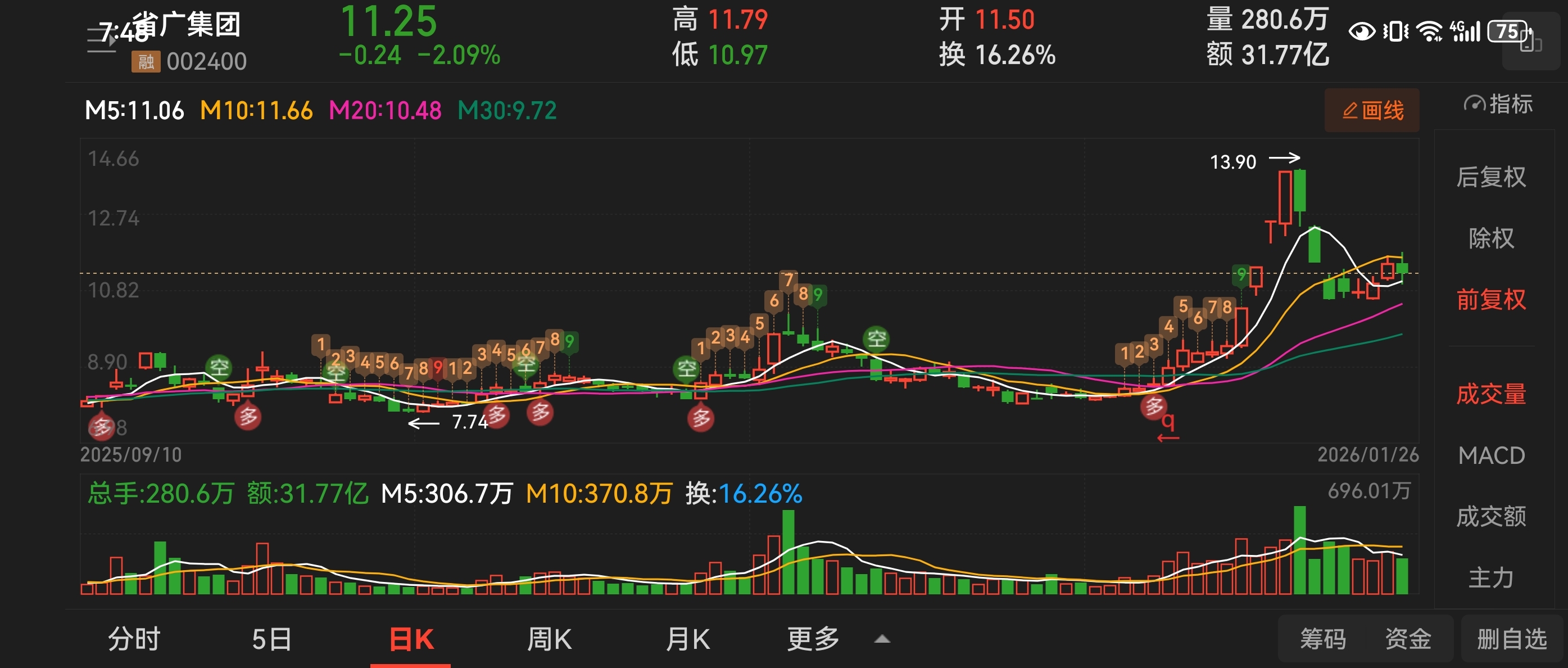 $省广集团(SZ002400)$ 今天给我反包拉升上去