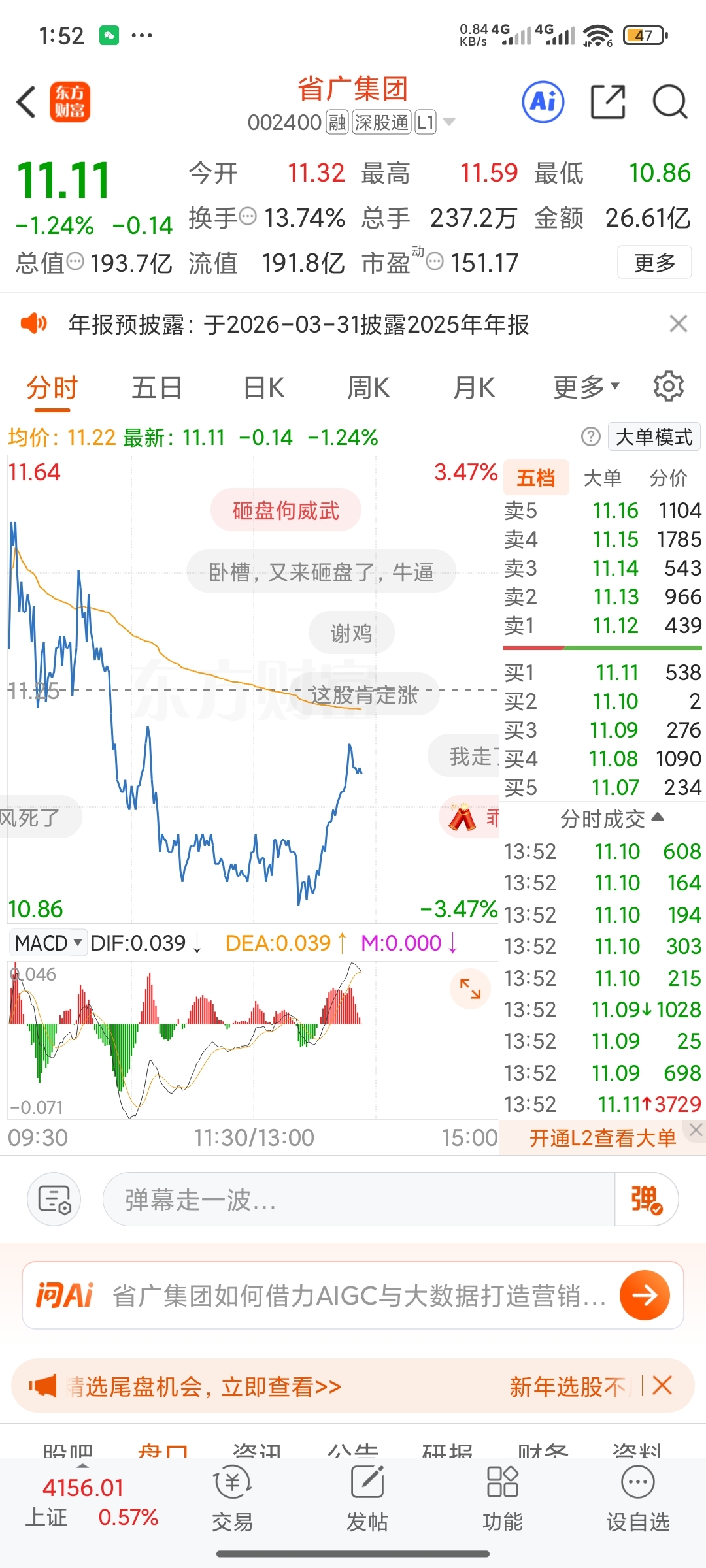 $省广集团(SZ002400)$ 马上触发量化