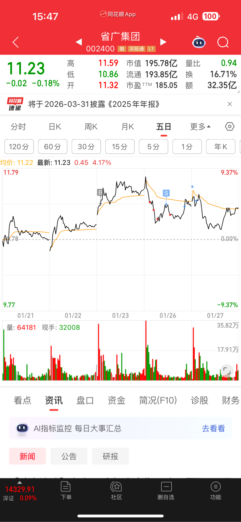 $省广集团(SZ002400)$ 算你狠!只能赚个一千块零花钱走人,真跟跌不的玩意