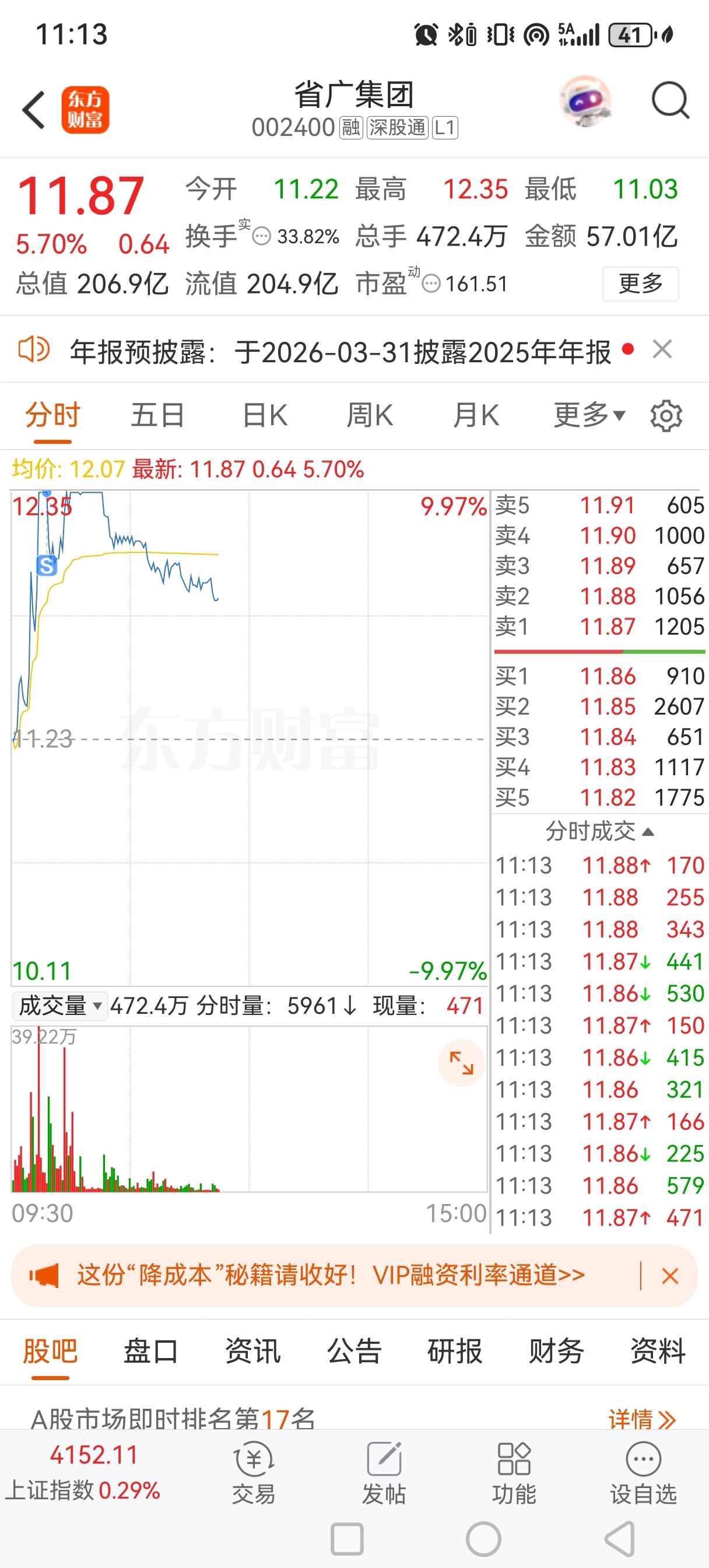 $省广集团(SZ002400)$ 不好意思,被我几千股砸开了