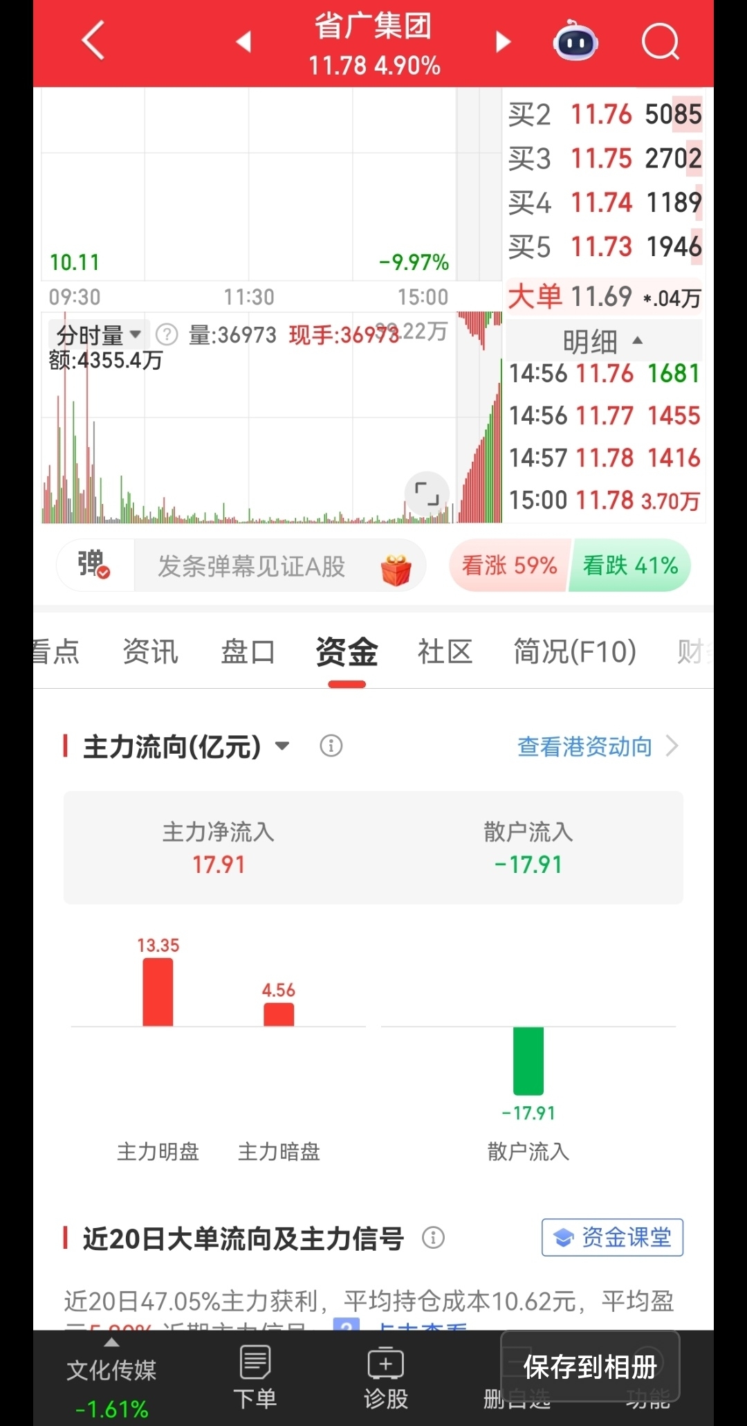 $省广集团(SZ002400)$ 今天明暗盘进来了17个亿,明天怎么走。。。