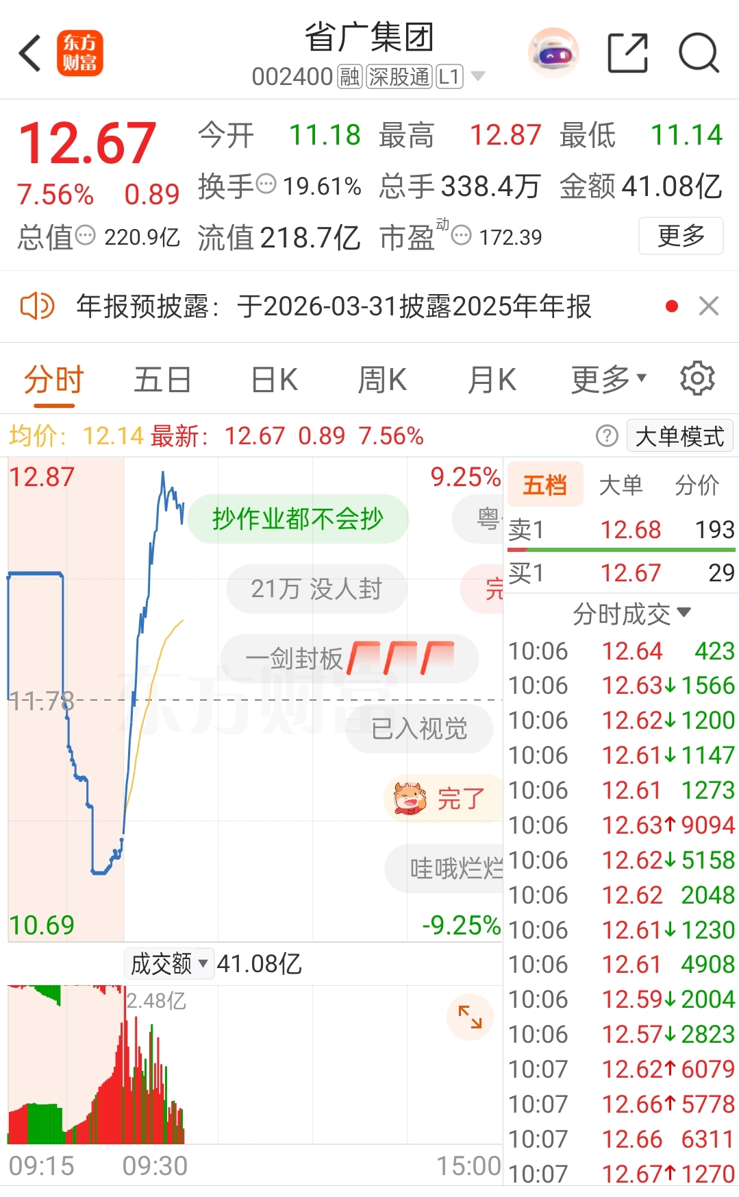 龙哥昨天介入的$省广集团(SZ002400)$ 今天也起飞了