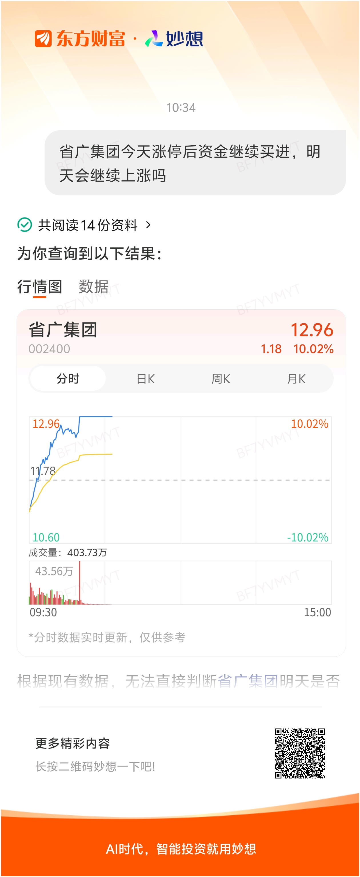 妙想一下:省广集团今天涨停后资金继续买进,明天会继续上涨吗