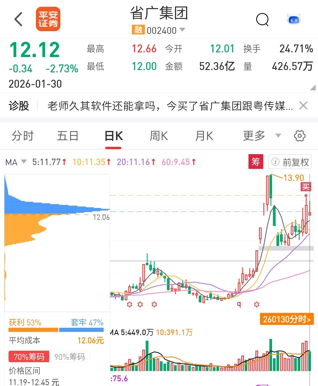 $省广集团(SZ002400)$ 祝贺今天跑了的兄弟,底部的筹码峰没有了