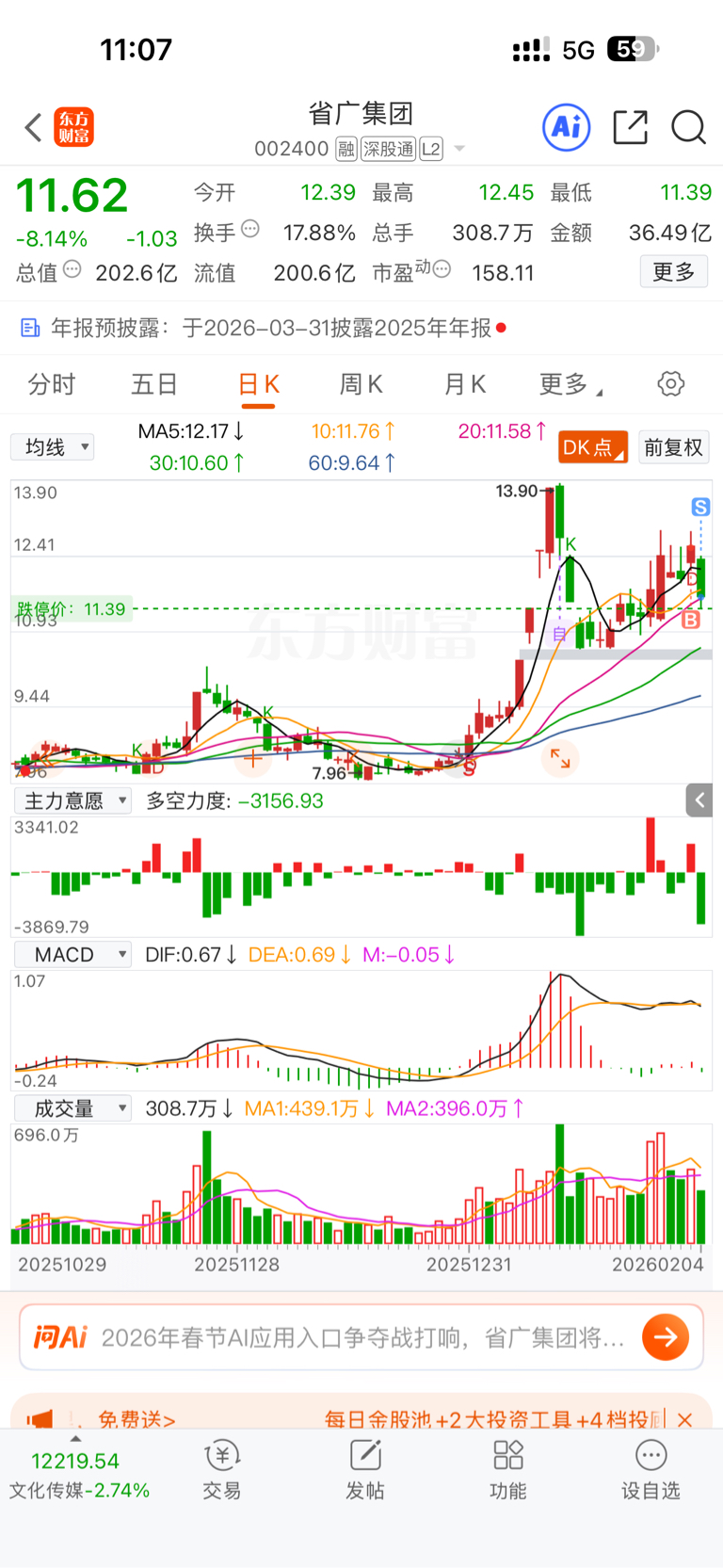 $省广集团(SZ002400)$ 撤了,亏9个点。在里面的兄弟发财