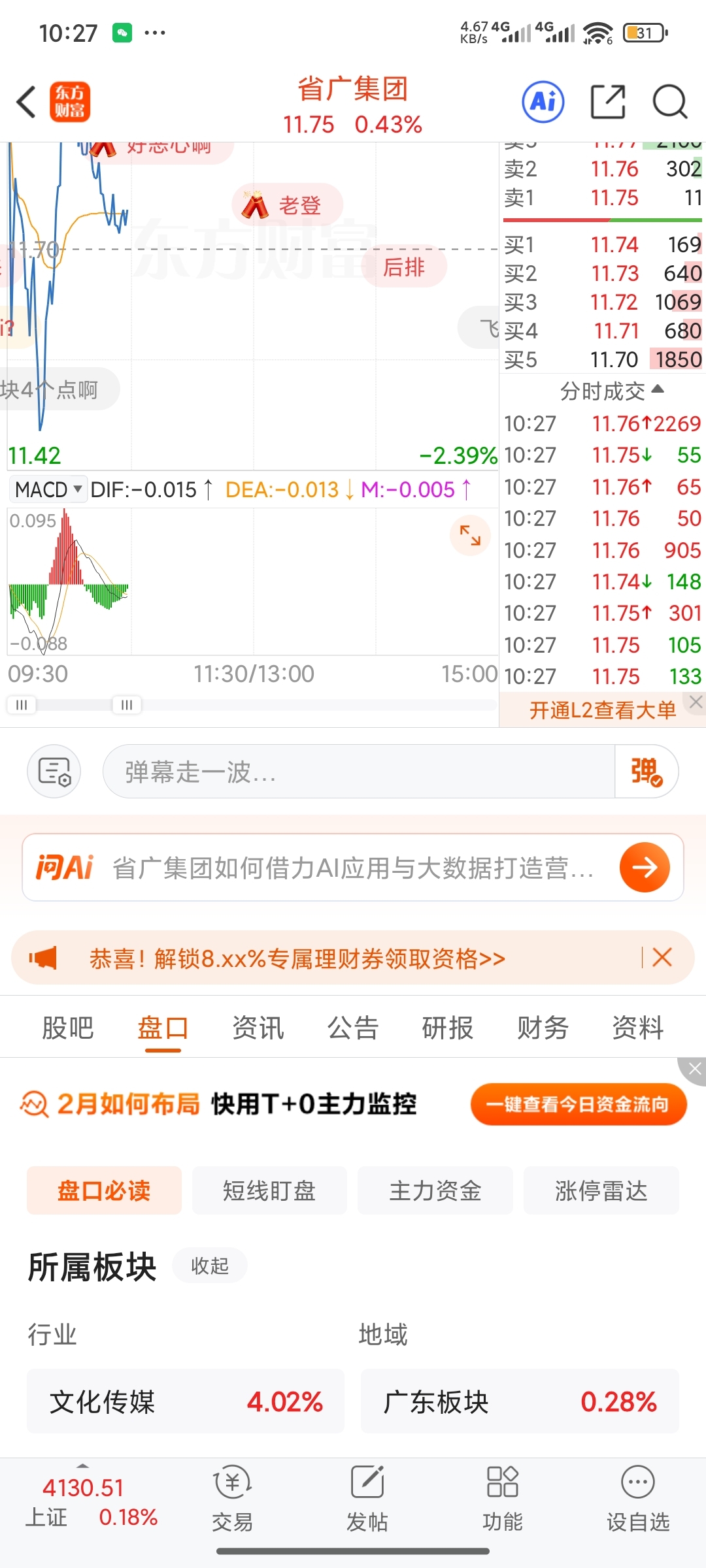 $省广集团(SZ002400)$ 板块4个点,你0.4