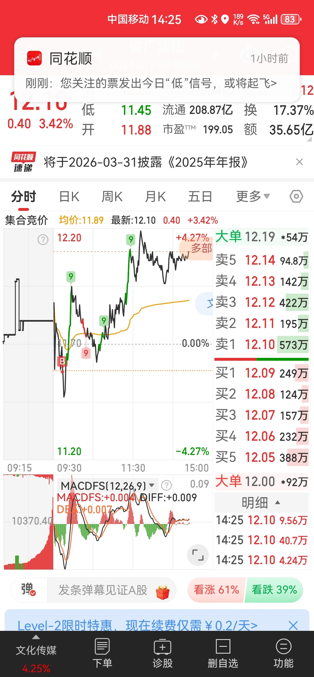 $省广集团(SZ002400)$ $粤 传 媒(SZ002181)$ 量化扎堆的票跟牛散股东的票就是不一样。同样的点选择了你造就不同的结果,关键是早上你热度比粤传媒高多了,没想到午盘差这么多。