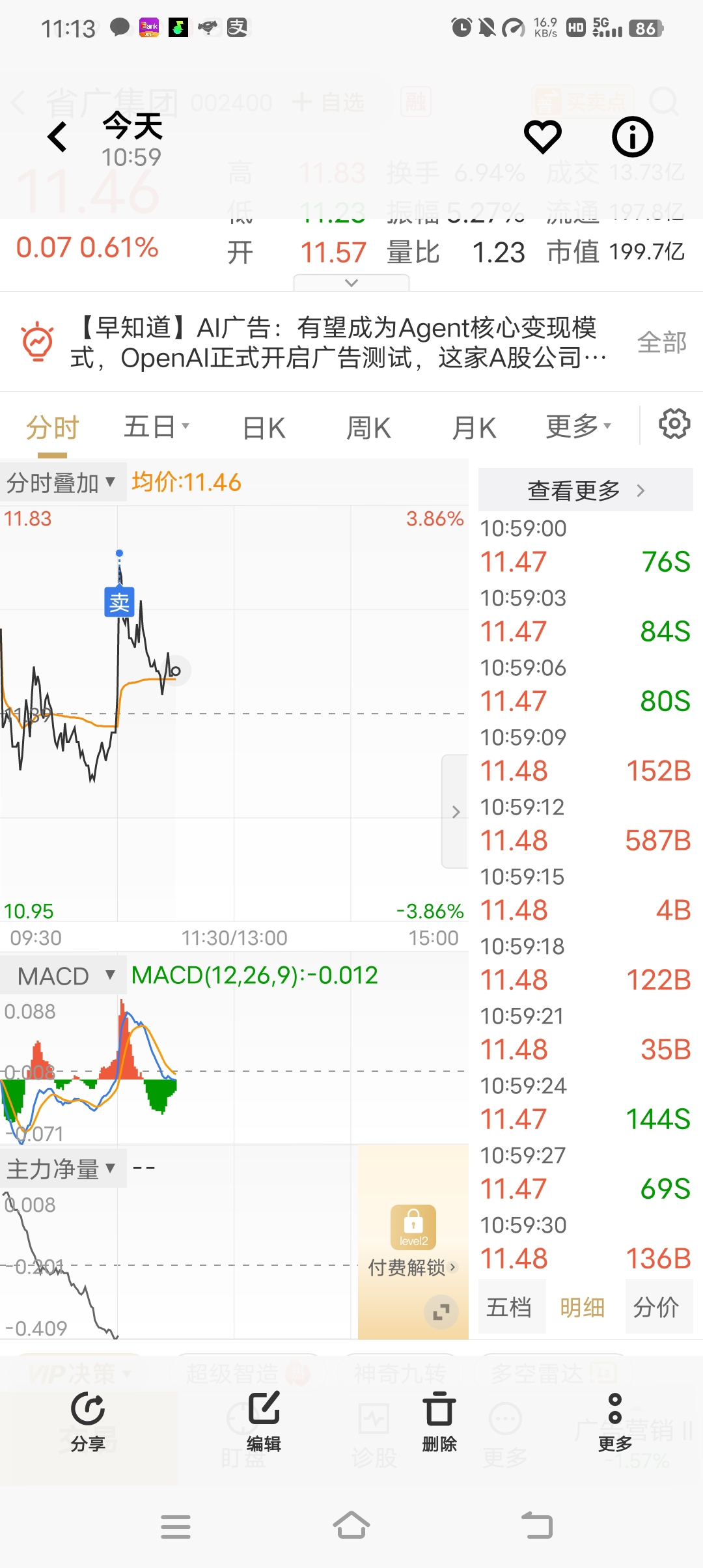 $省广集团(SZ002400)$ 早上被你走鸡,好不容易又抓到你了