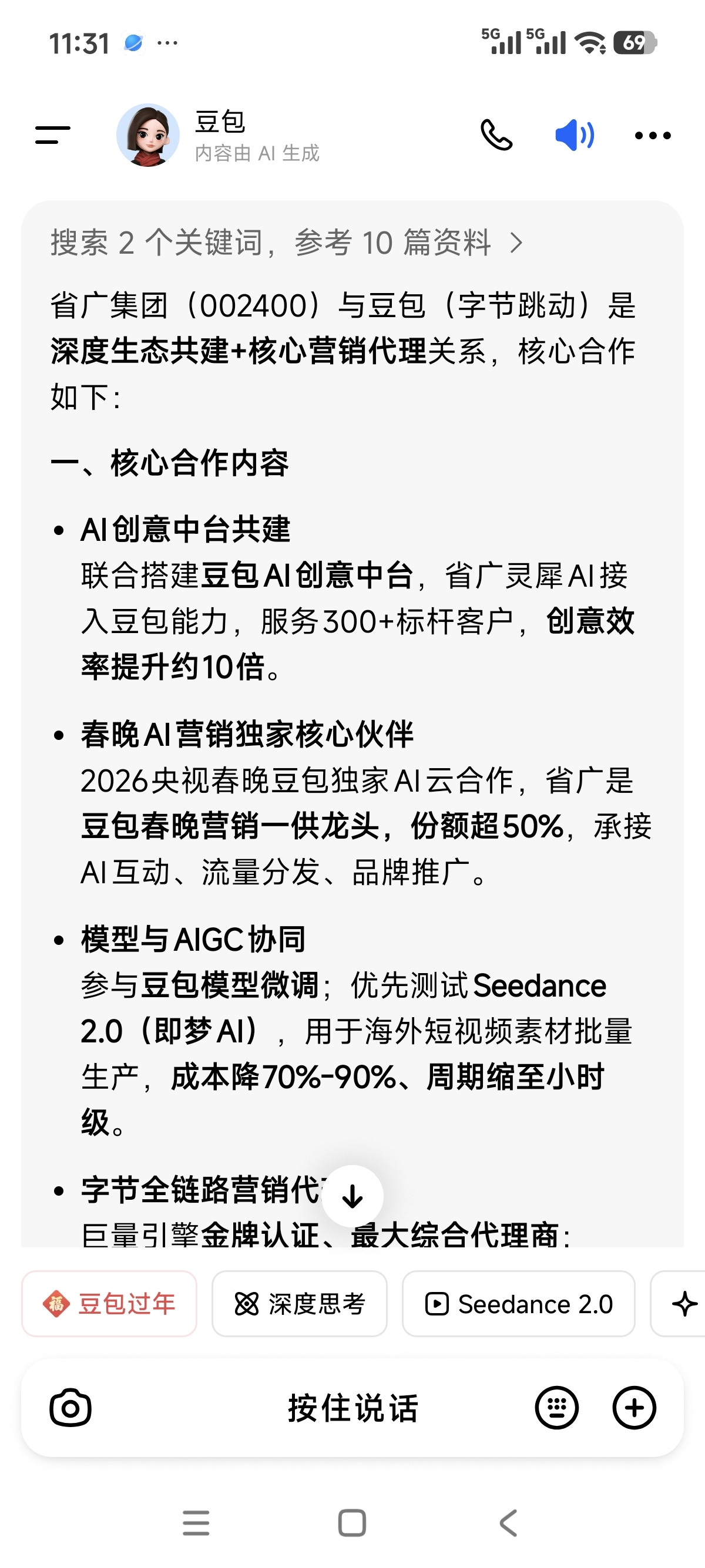 $省广集团(SZ002400)$ 当时买入只考虑了与豆包深度绑定资金情绪肯定可以,没考虑量化股性,认错,割了。