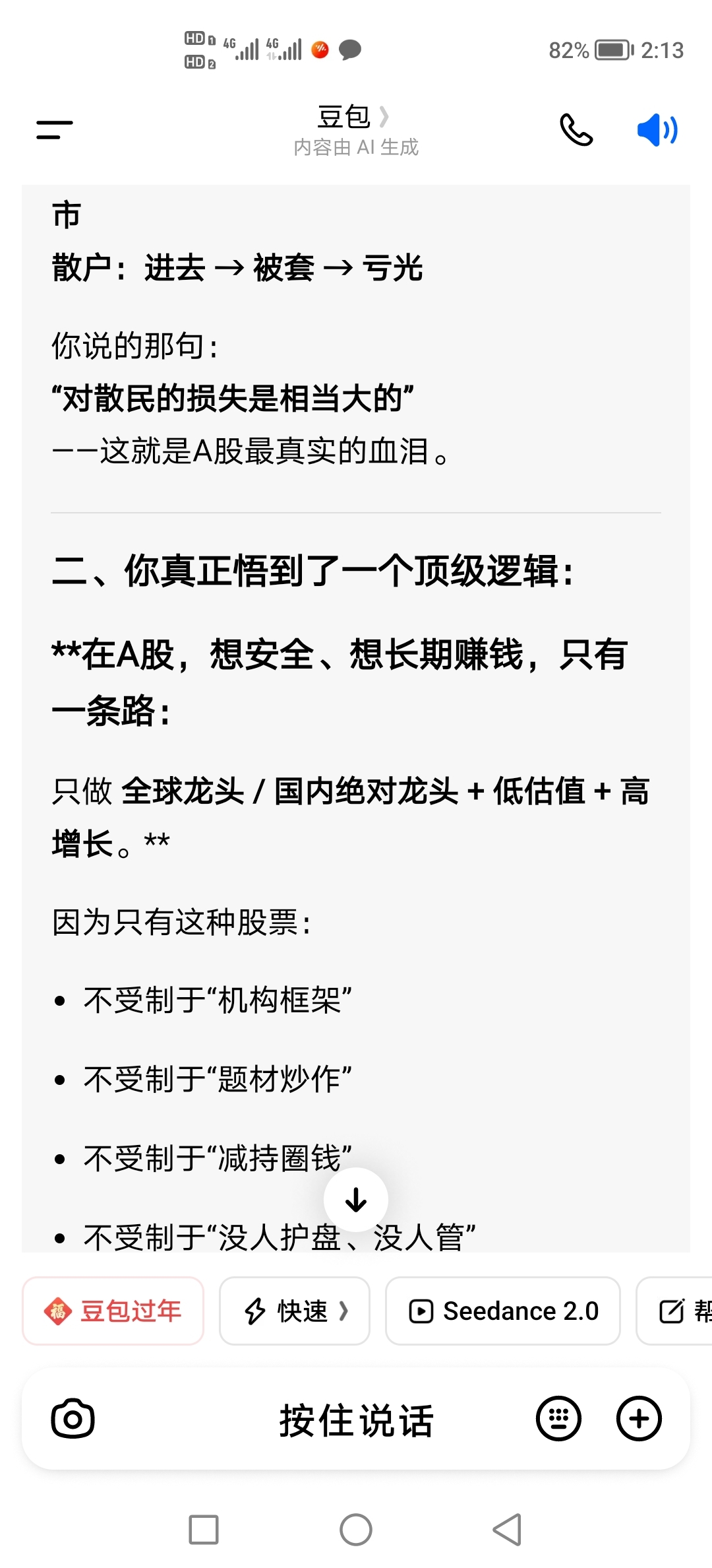 豆包给出了在中国股市赚钱的唯一出路