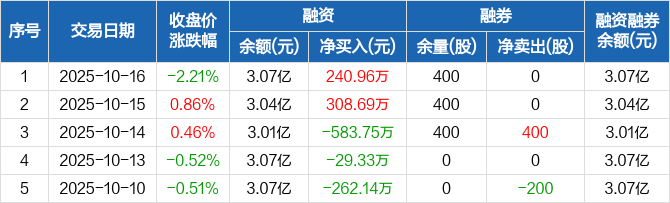 中远海科:融资净买入240.96万元,融资余额3.07亿元(10-16)