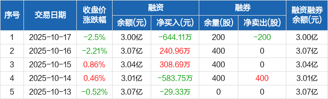 中远海科:融资净偿还644.11万元,融资余额3亿元(10-17)