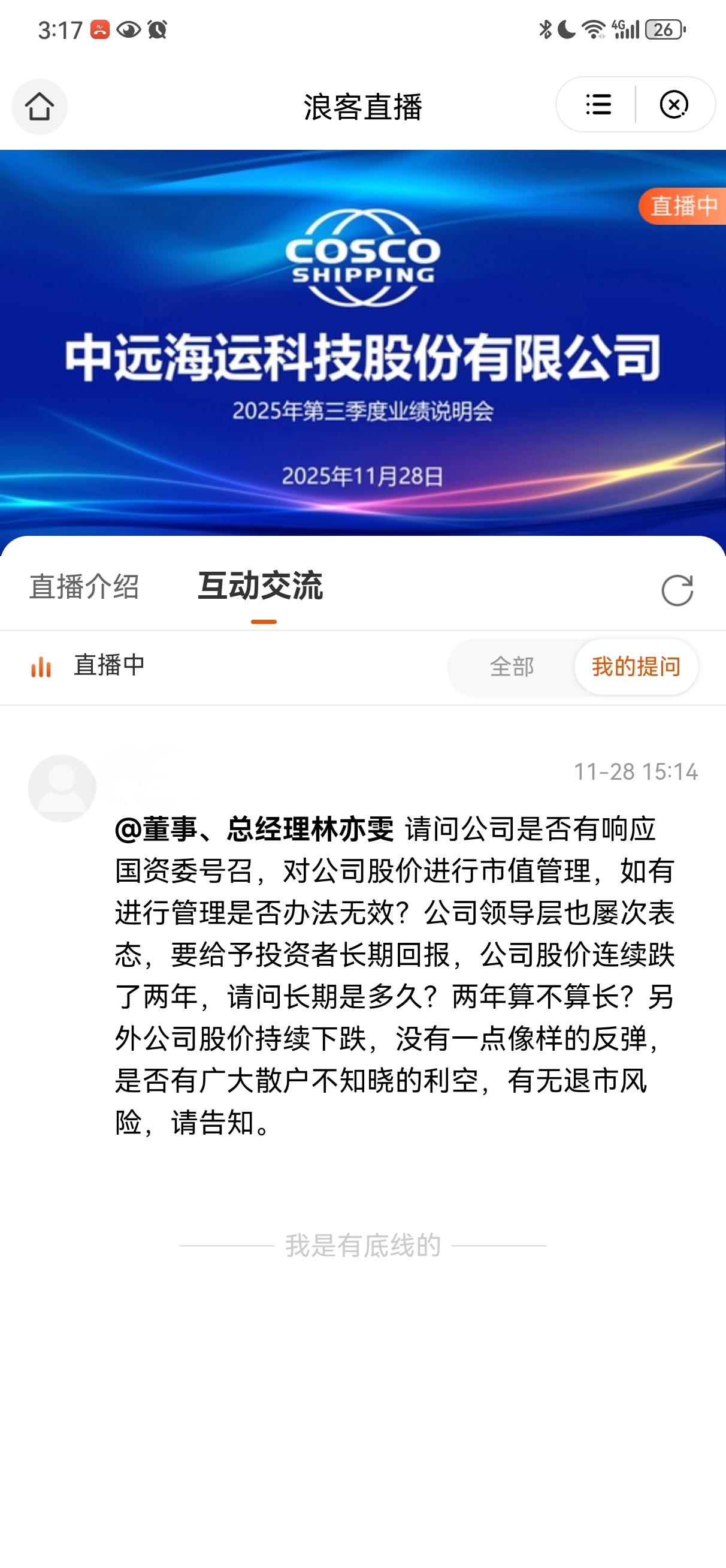 什么意思啊?别人的问题是问题,我的问题就不是问题吗?为什么没人回答我问的问题?是我的问题有技术性难度,还是你们选择视而不见?难道我的问题不能代表广大中小投资者的心声吗?家人们给我顶上去,让主力看看