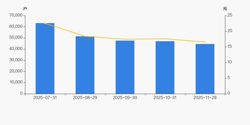 自2025年7月31日以来,公司股东户数连续4期下降,截至目前减幅为29.54%。2025年7月31日至2025年11月28日区间股价下降26.41%。