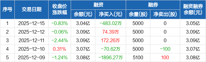 中远海科:融资净偿还483.02万元,融资余额3.04亿元(12-15)