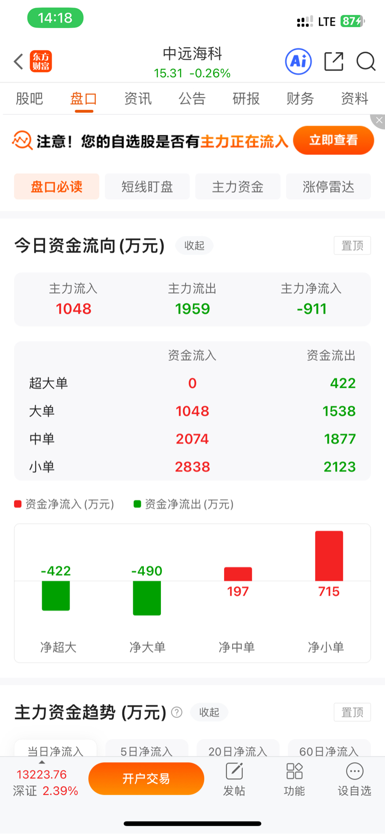 $中远海科(SZ002401)$ 主力玩命跑,散户拼命接