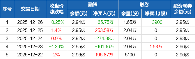 中远海科:融资净偿还65.75万元,融资余额2.94亿元(12-26)