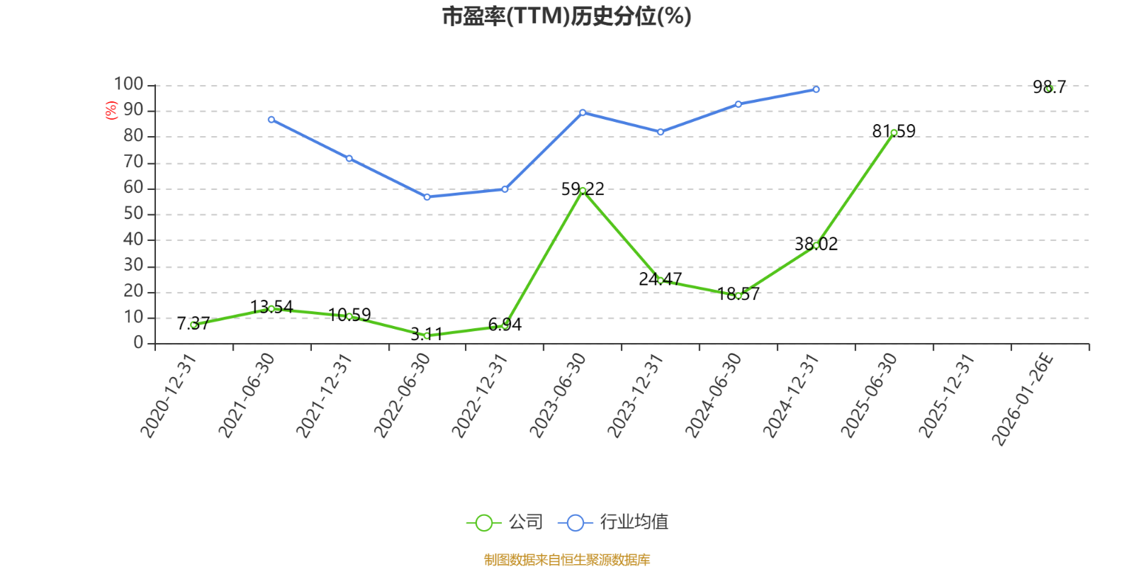 市盈率、市净率为负时,不显示当期分位数,会导致折线图中断。