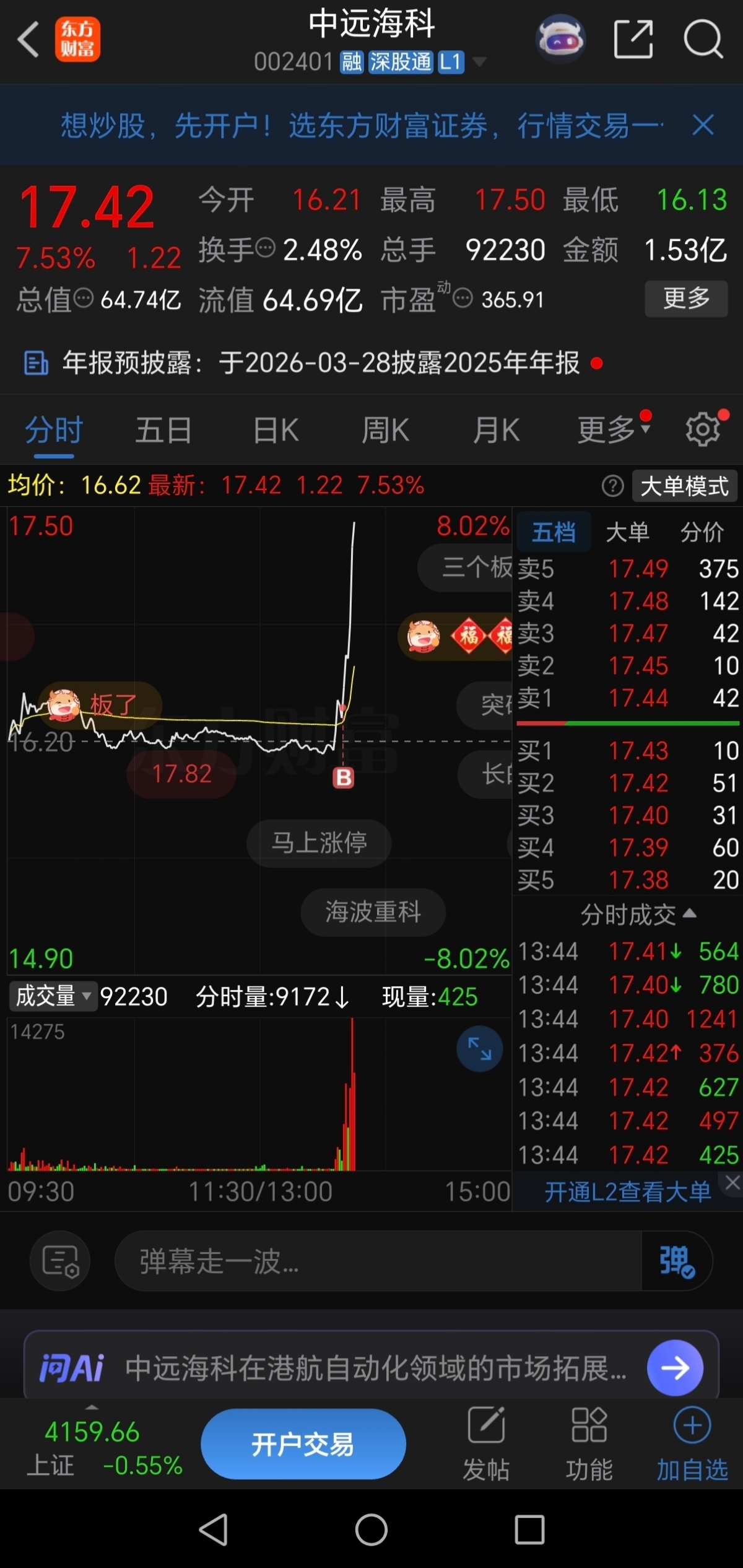 16.33,果断介入$中远海科(SZ002401)$