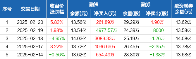 和而泰:融资净买入261.89万元,融资余额13.56亿元(02-20)