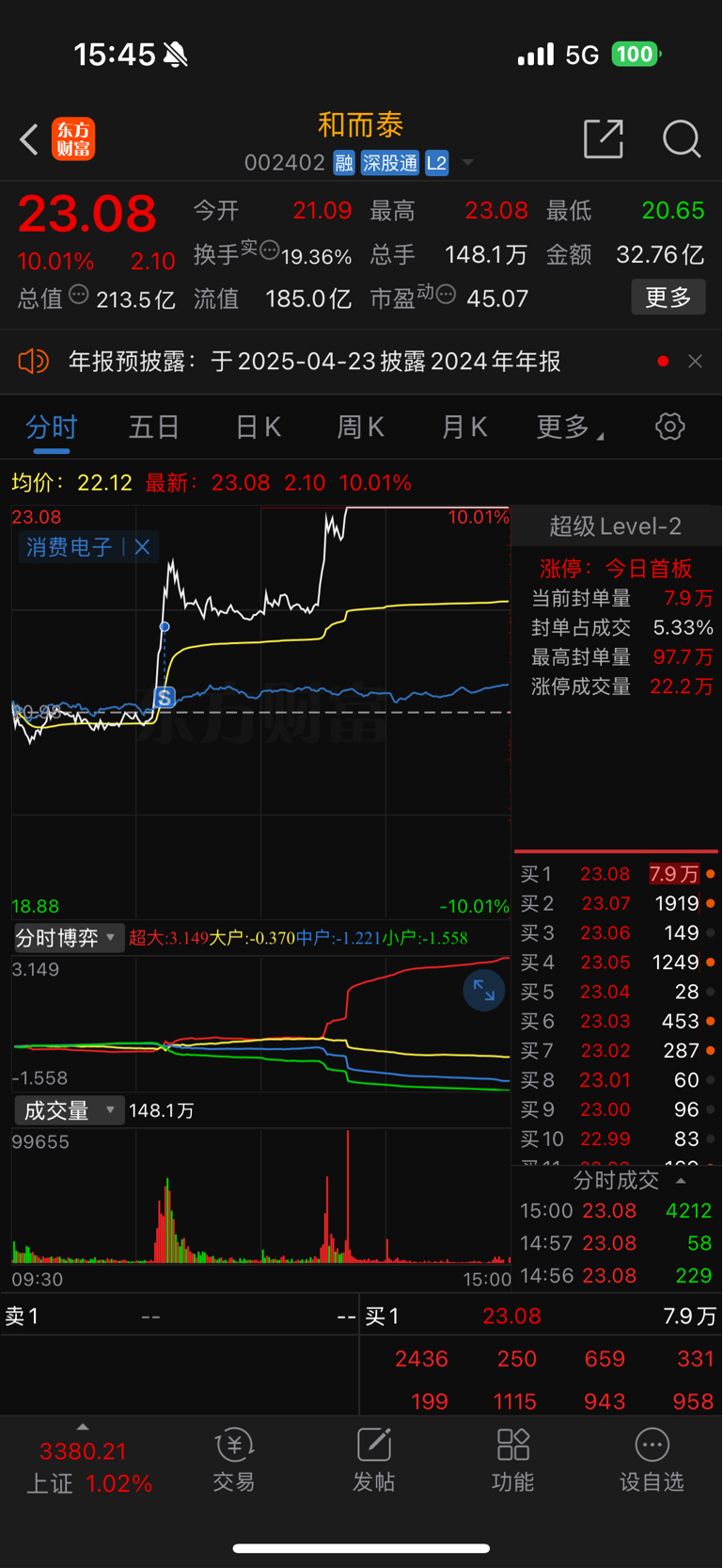 $和而泰(SZ002402)$ 这行情自动单害人啊稍微一抖就下车了