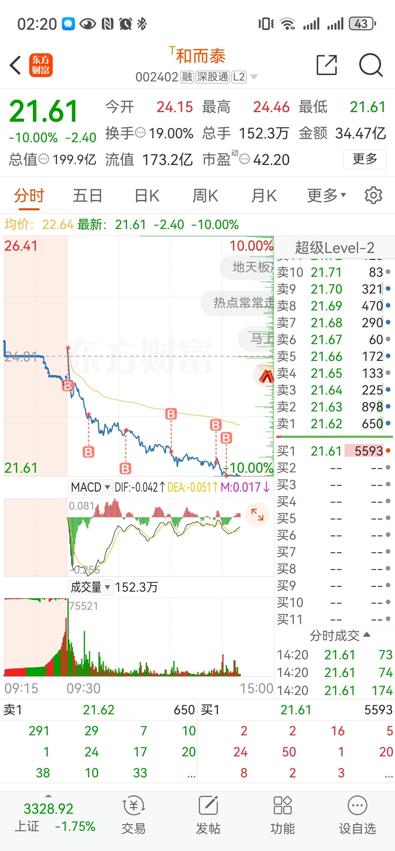 $和而泰(SZ002402)$ 无奈。永远的做多。但是很失望
