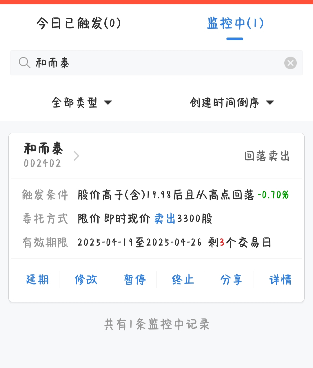 $和而泰(SZ002402)$ 谁能告诉我为什么没有触发条件单?今天的最高点不就是19.98吗?