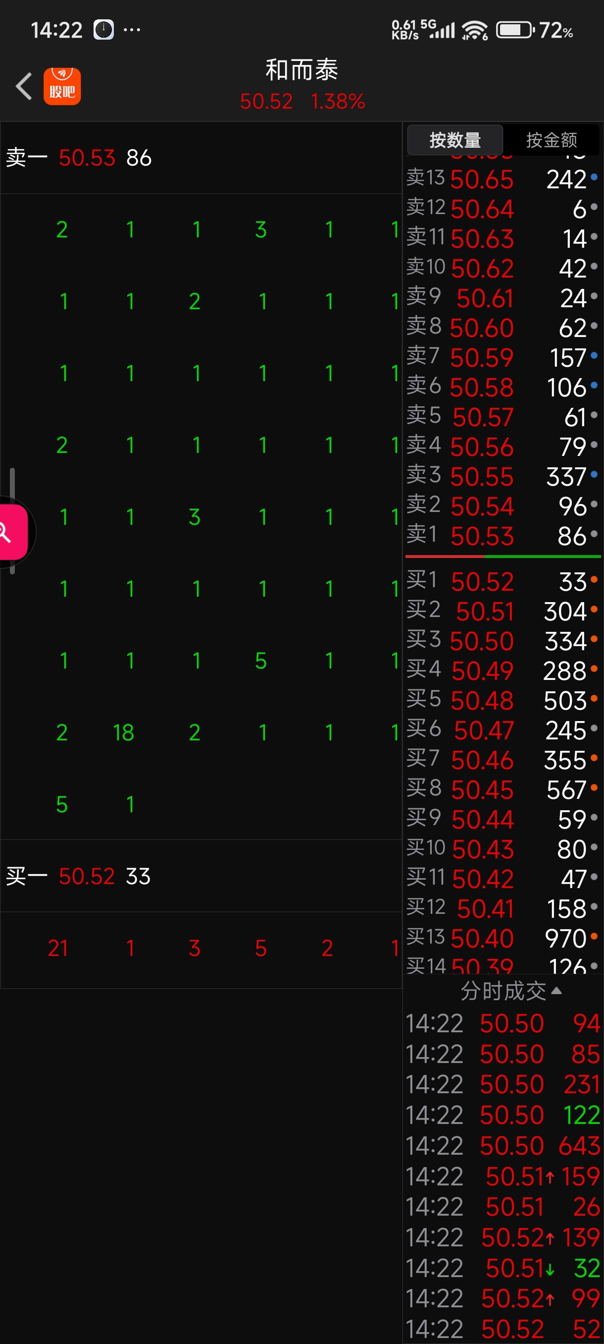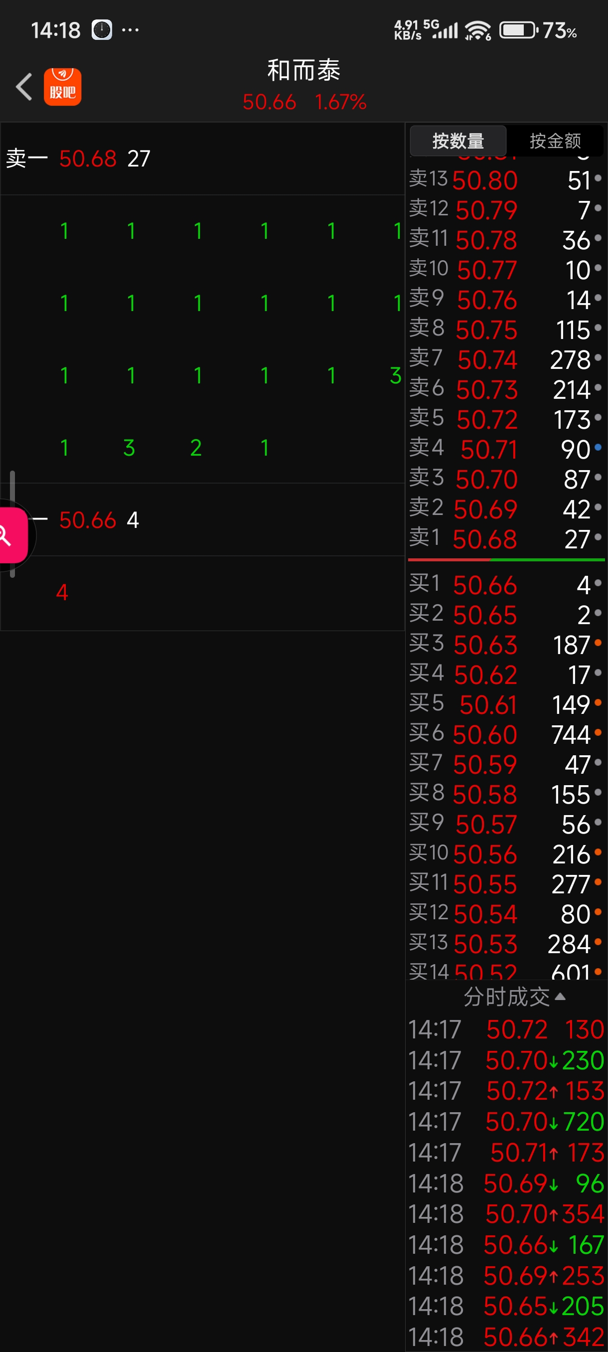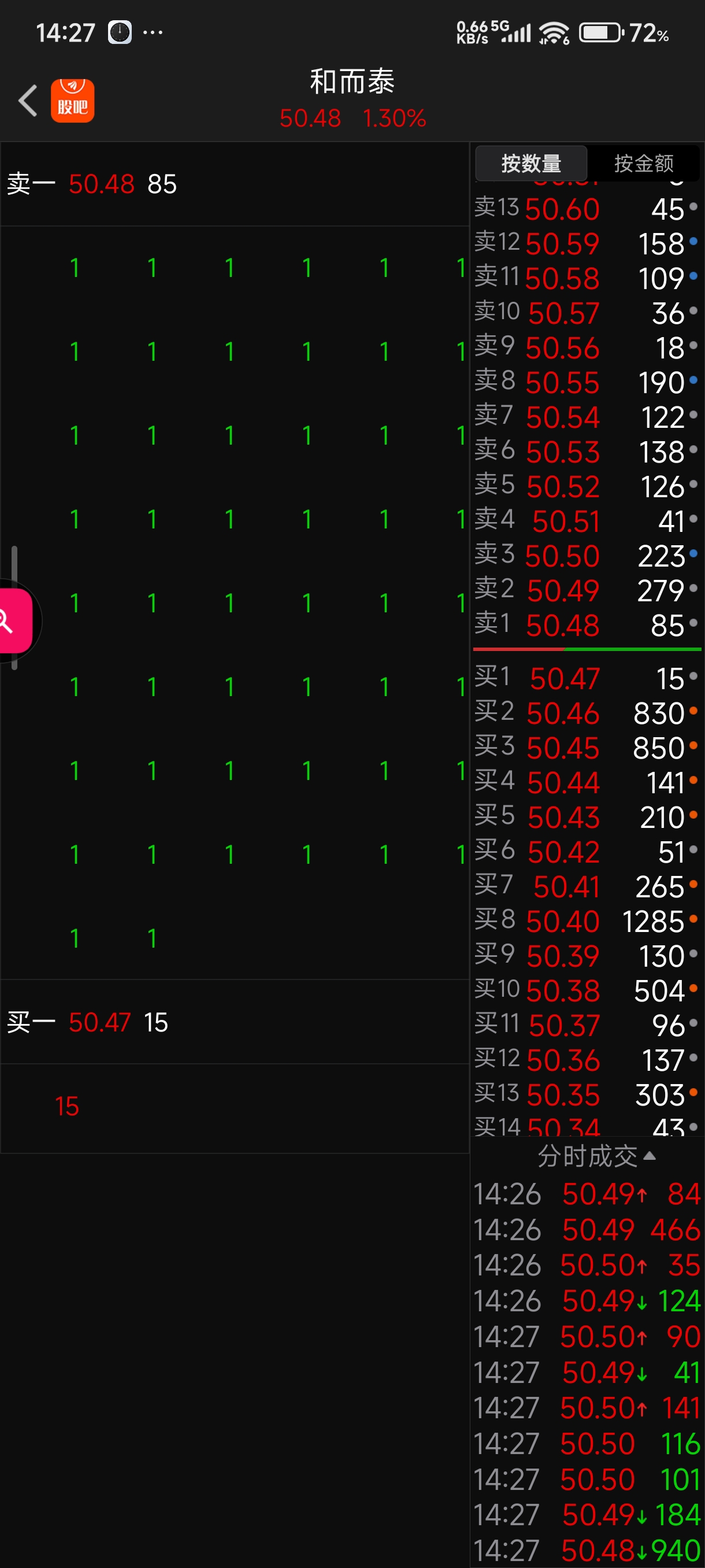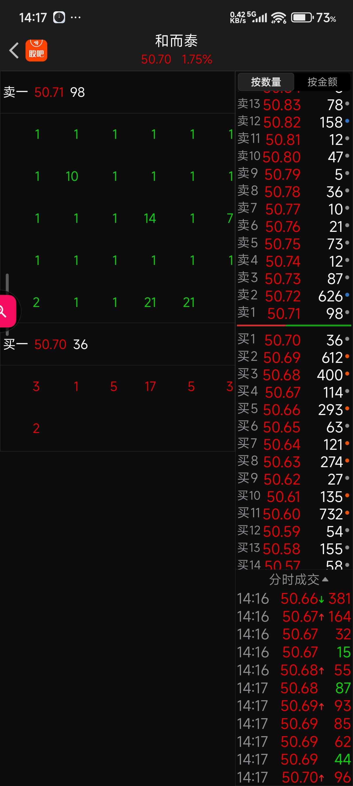 $和而泰(SZ002402)$ 拉升后全是挂1手卖出单,应该是量化在抛。