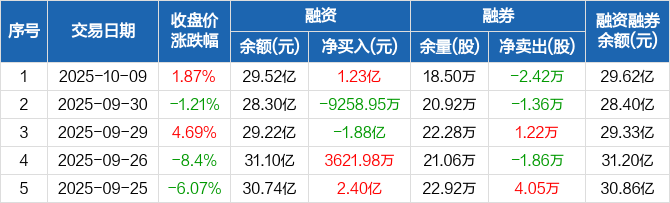 和而泰:融资净买入1.23亿元,融资余额29.52亿元(10-09)