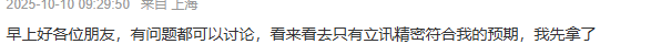 立讯精密002475:消费电子方向,由于之前做过,加之早上竞价也没什么不妥,看到有水下位置所以先手拿了些,但是一开始连水平线都不上就直接往下掉,这时候已经没办法了,所以今天也没再开其他苍。周一就算修复也得要板了才算强,否则有点难,只能找机会避免加大笋失。刚好前一个周期的票也告一段落,下周整装出发的话就要用大苍位去出击了。