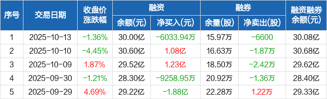 和而泰融资融券信息显示,2025年10月13日融资净偿还6033.94万元;融资余额30亿元,较前一日下降1.97%。