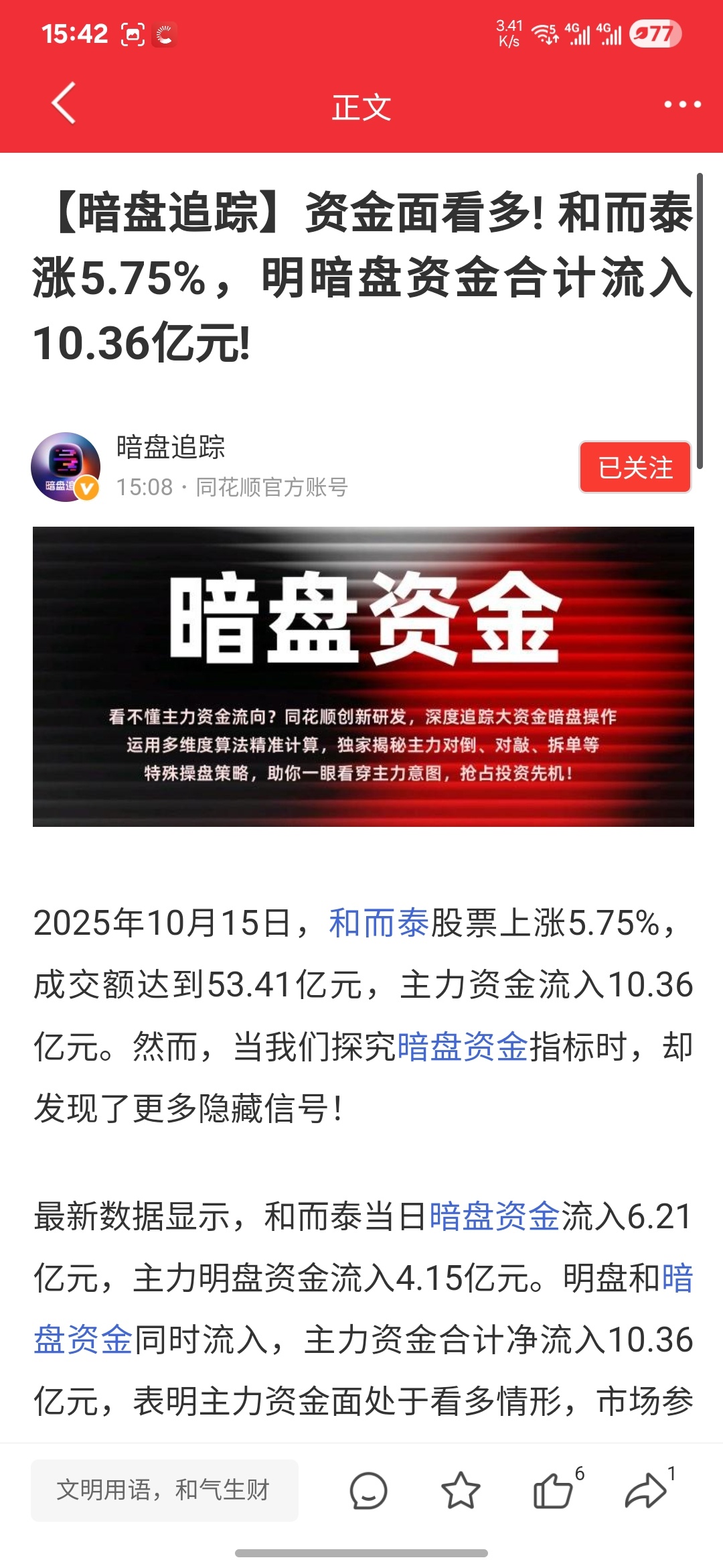 $和而泰(SZ002402)$ 暗盘资金