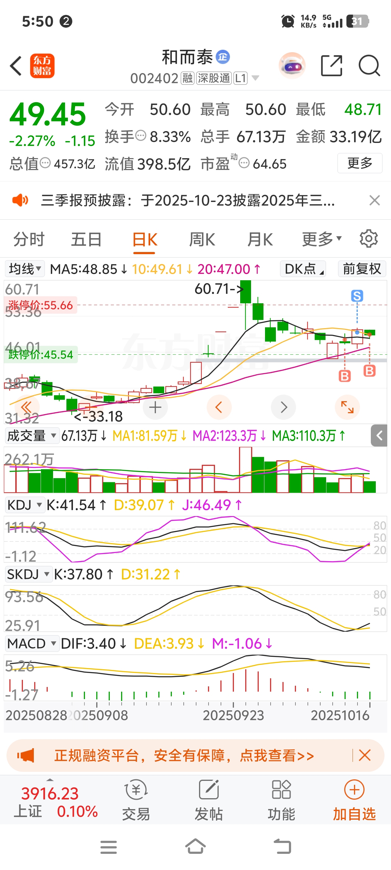 $和而泰(SZ002402)$ 前天买,昨天卖了,今天接了回来,还行吧