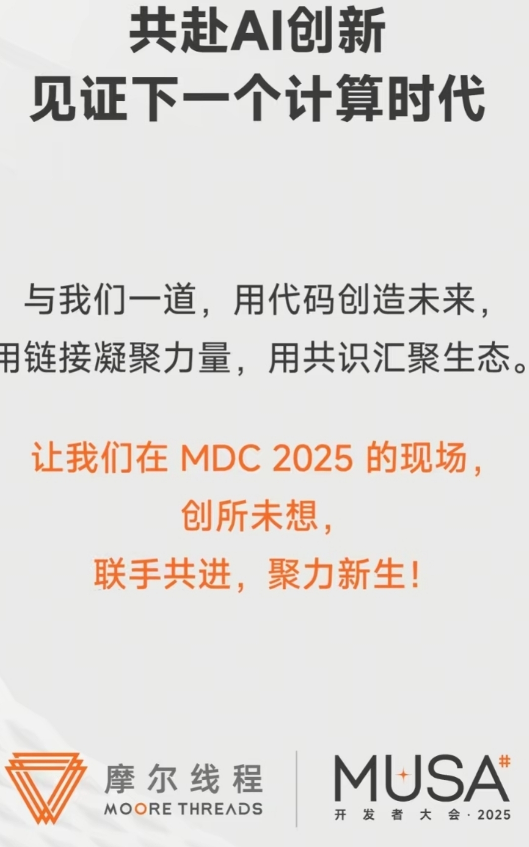 摩尔线程首届开发者大会(简称MDC)将于2025年10月30日-31日在北京举办