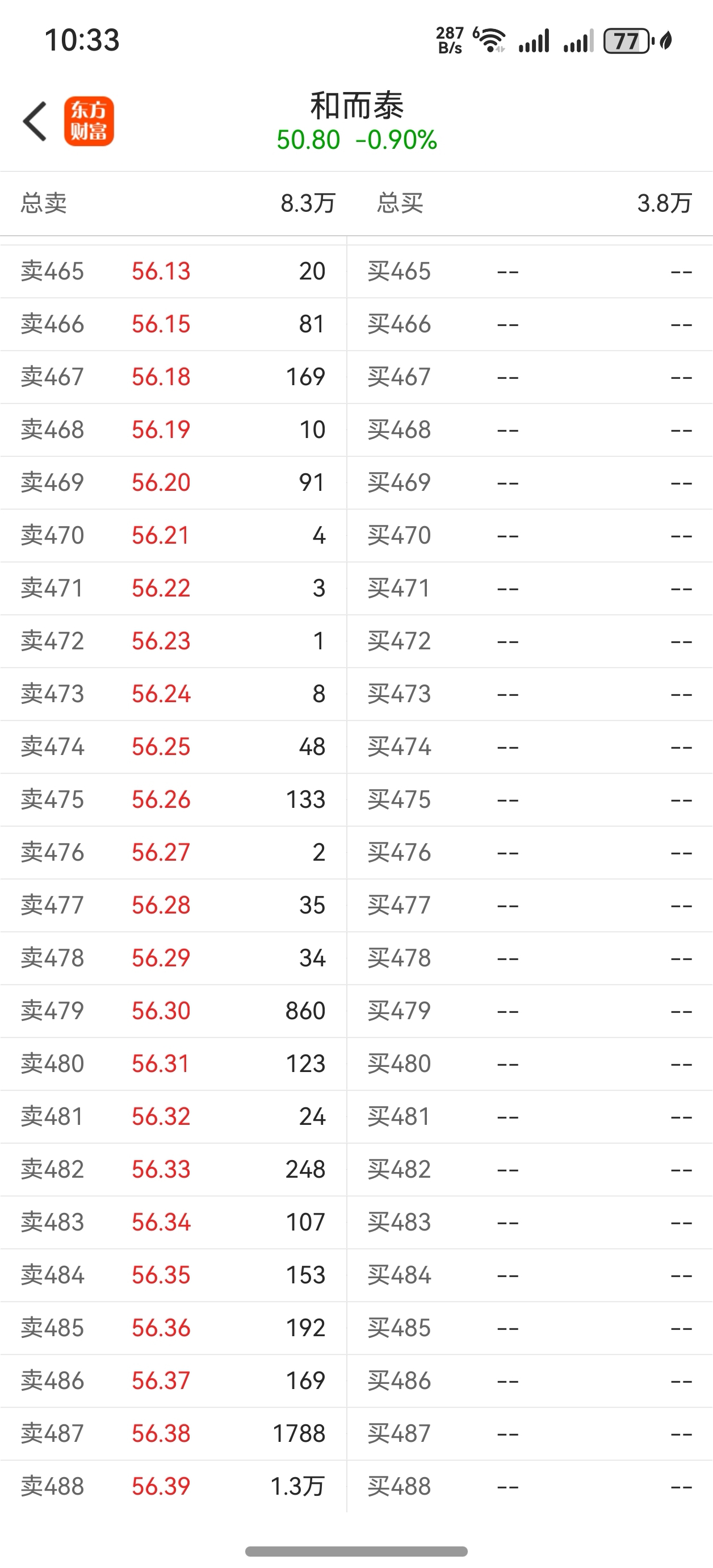 $和而泰(SZ002402)$ 哈哈哈,不错,56.39也有1万多手卖
