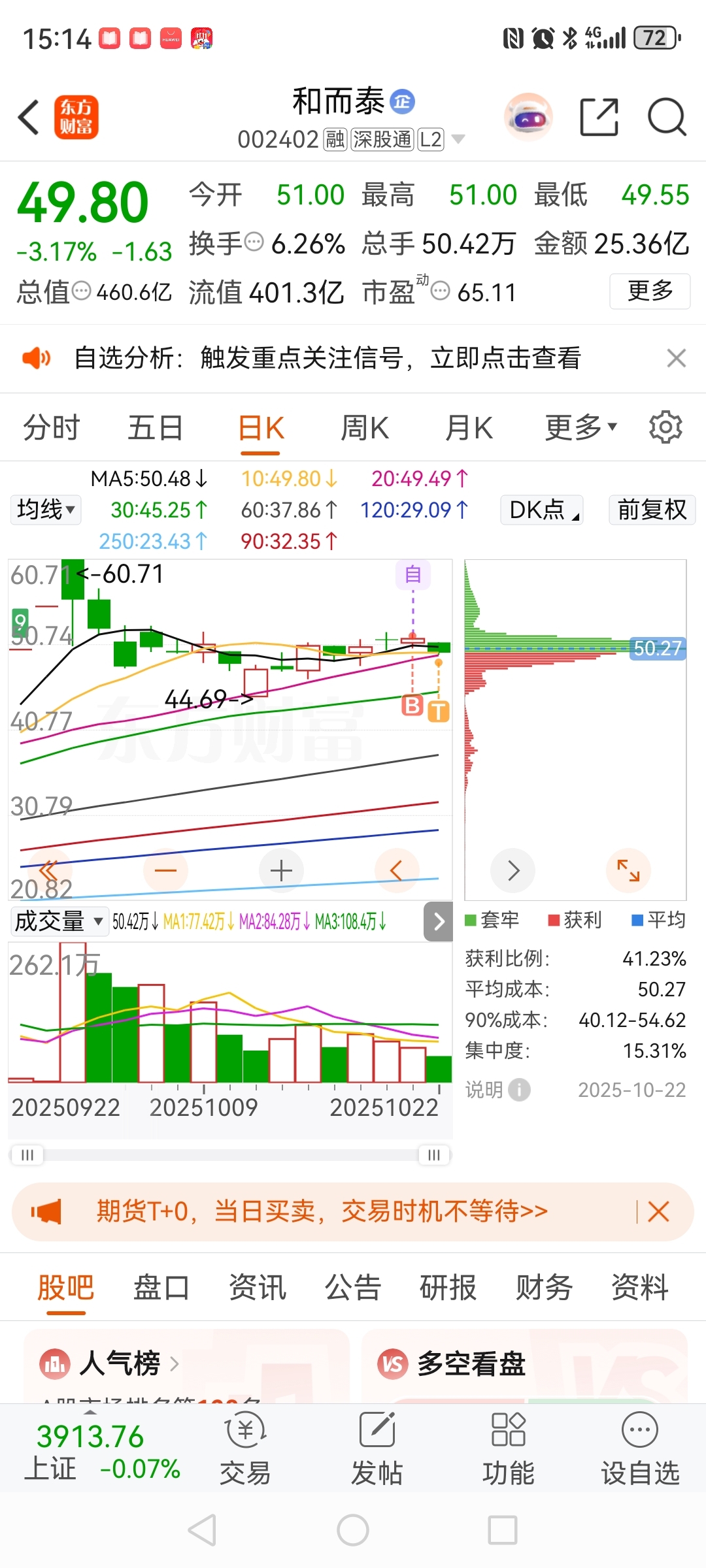 $和而泰(SZ002402)$ 地量地价。明天涨停