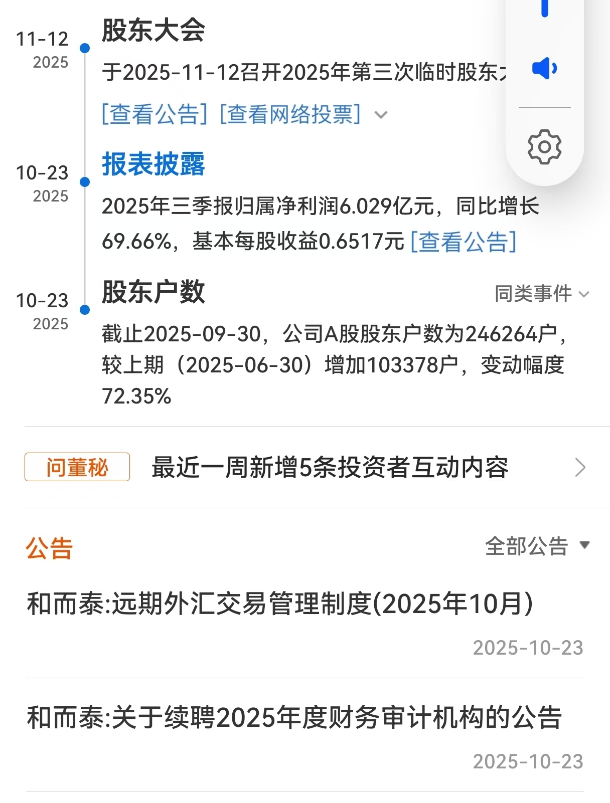 $和而泰(SZ002402)$ 财报确实比我想象的好,因为我一直持仓,所以比较关注,财报好只是吸引资金的一个筹码,并不是说财报好就一定能涨多少,主要是要有资金层面的关注,中长期和而泰没有一点问题,后面还有摩尔股权的一个收益,相信第四季度一定是超预期的,年内的话看多和而泰的,不会做T的朋友就拿着就行,一定有收益