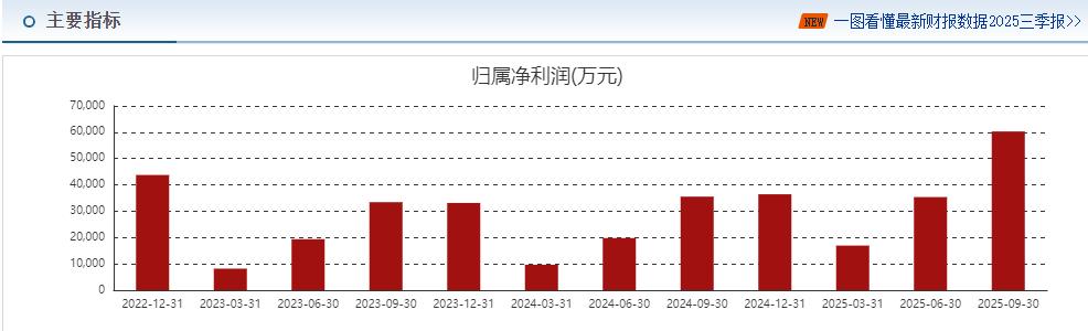 2025年三季报归属净利润6.029亿元,同比增长69.66%,基本每股收益0.6517元